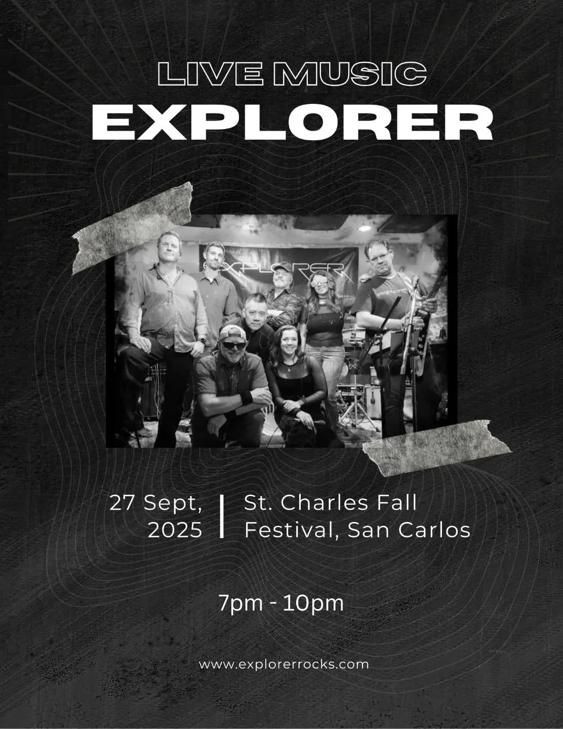 Some bands play a certain genre of music, while others pay tribute to a particular band they love. Over the past thirteen years, Explorer has steadily grown a reputation for their wide variety of party music that is always dance-able, with an occasional kick in the pants of something heavy and intense. No genre is off-limits. Covering many decades, Explorer will navigate through Classic Rock, Top 40 Pop, Southern Rock, Current and Classic Country, and yes, of course; 70's Funk & Dance. All these genres blended seamlessly together into a night of dancing and grooving! So come join the Explorer journey through the different styles of music that shaped your life.